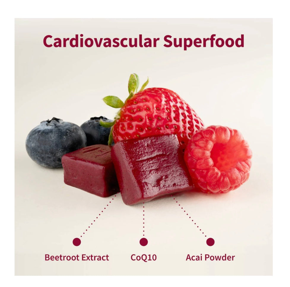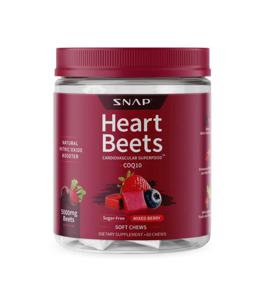Heart Beets Soft Chews are more than just a tasty treat – they’re a powerhouse of heart-supporting nutrients. Packed with the goodness of beetroot, formulated with vitamins B3, B12, and C, and naturally sweetened with stevia, these chews provide an easy and delicious way to care for your heart.